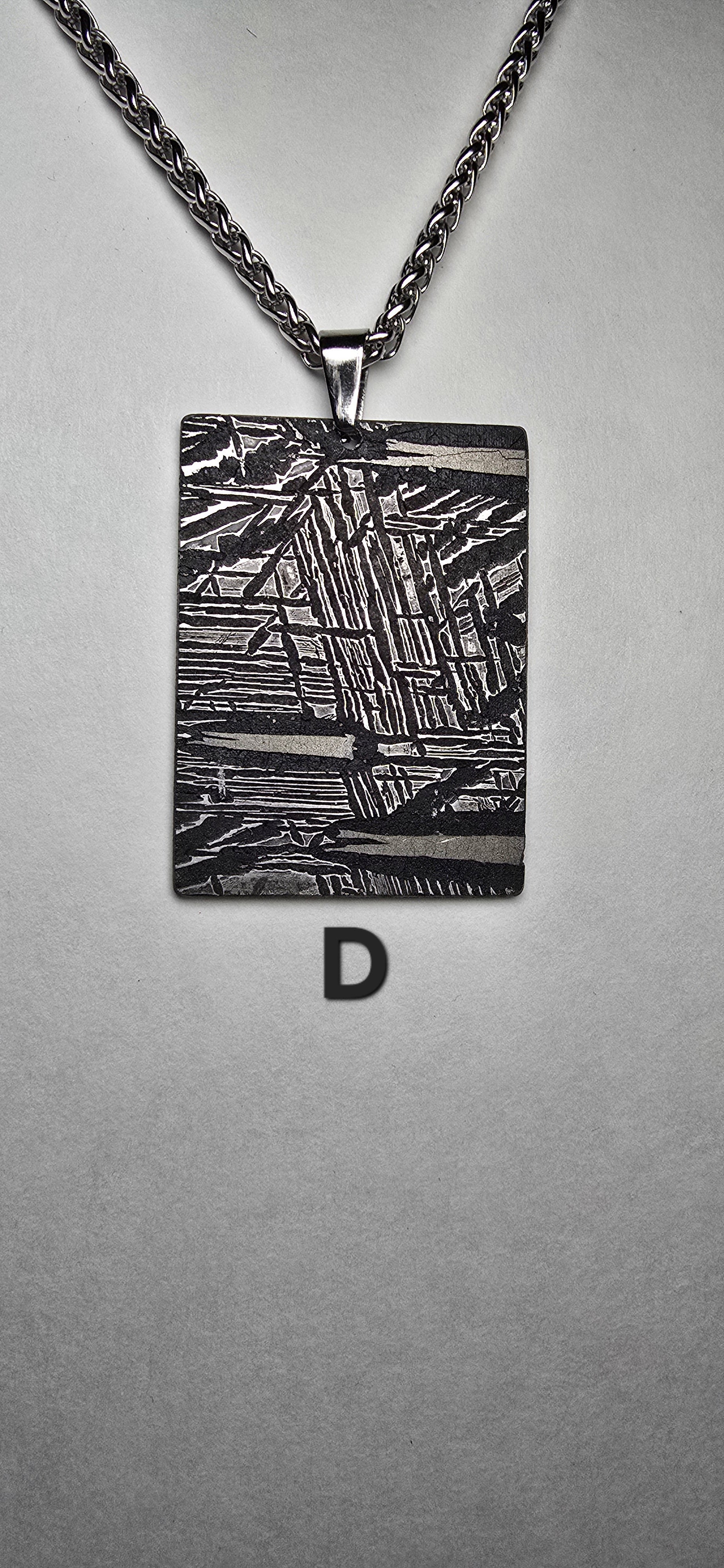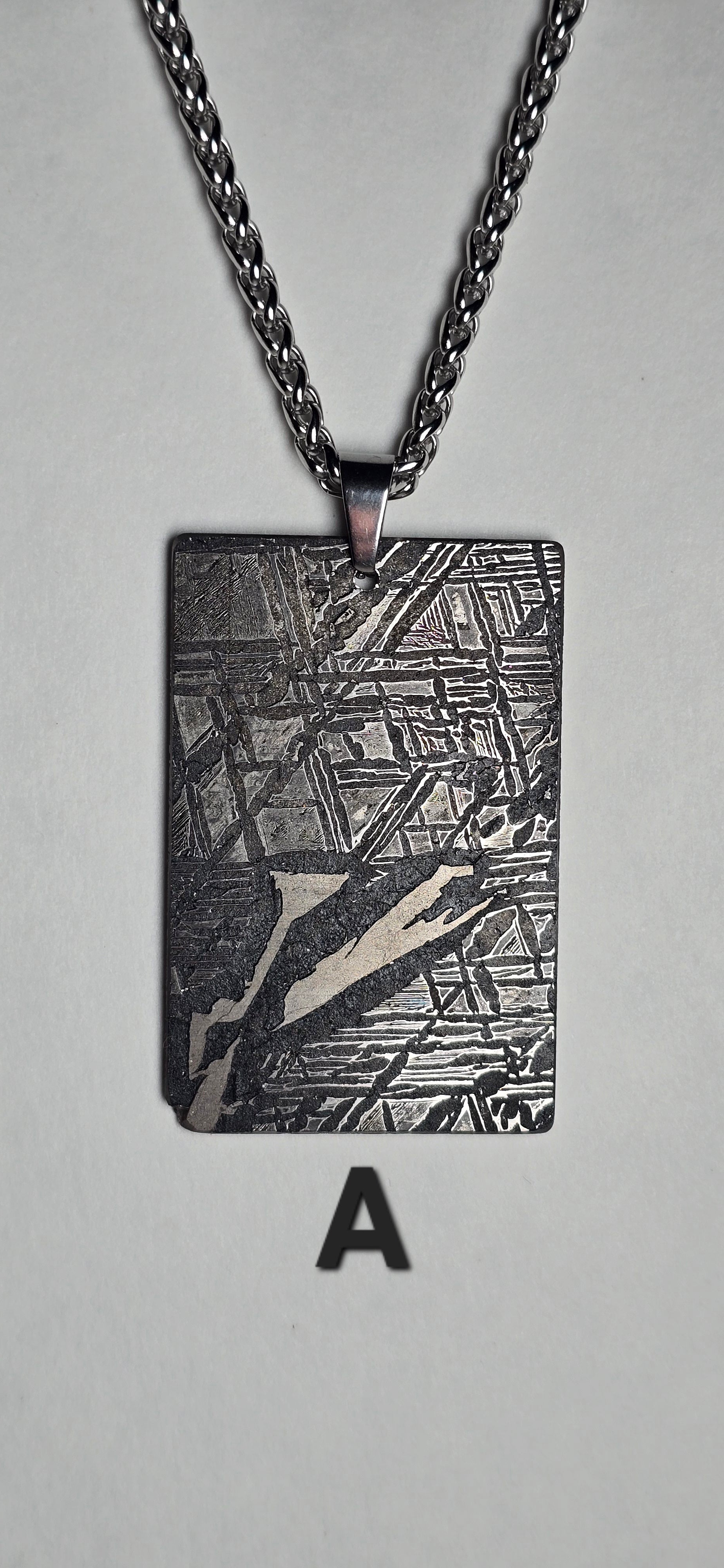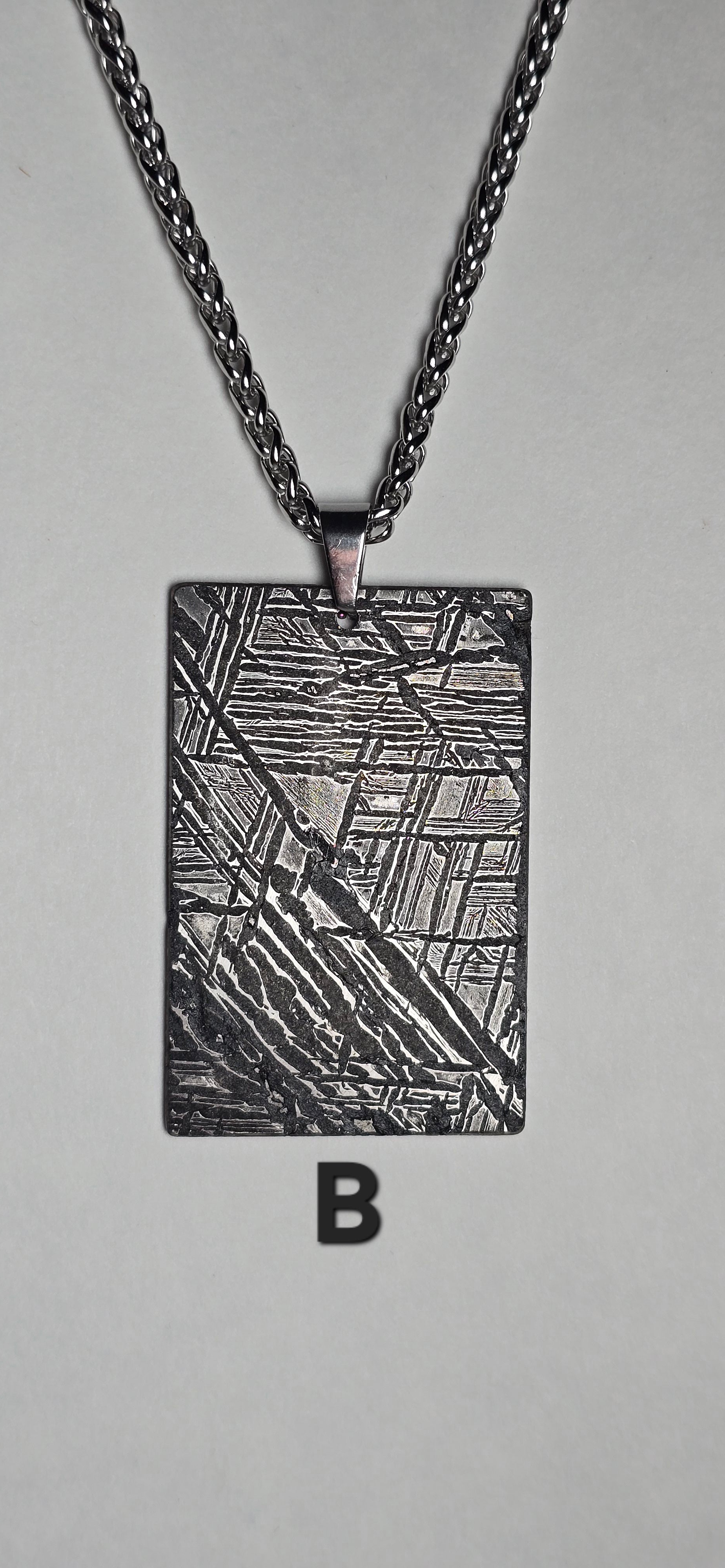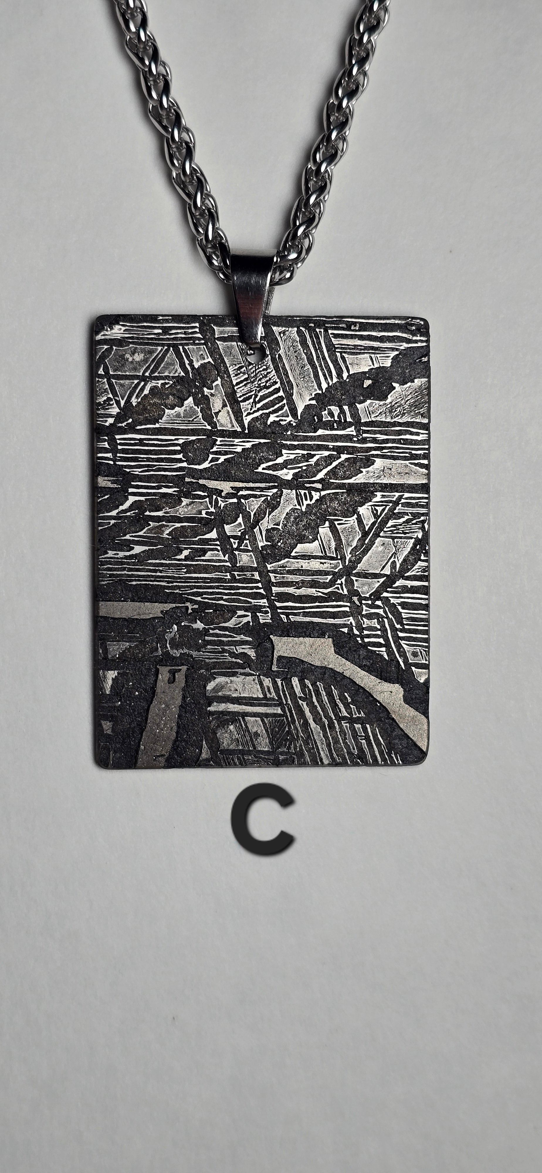 Crafted from genuine Aletai meteorite, this bold rectangular pendant carries the signature Widmanstätten pattern—etched by time and space itself. Each intricate line tells a story that began over 4 billion years ago, forged in the core of an ancient asteroid and discovered in the deserts of China.